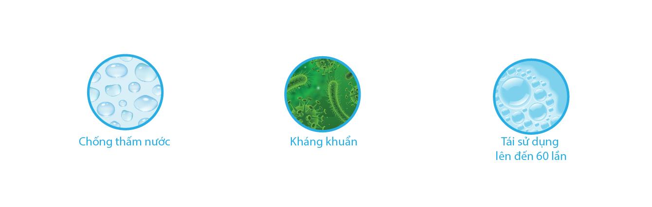 - Tái sử dụng lên đến 60 lần giặt.