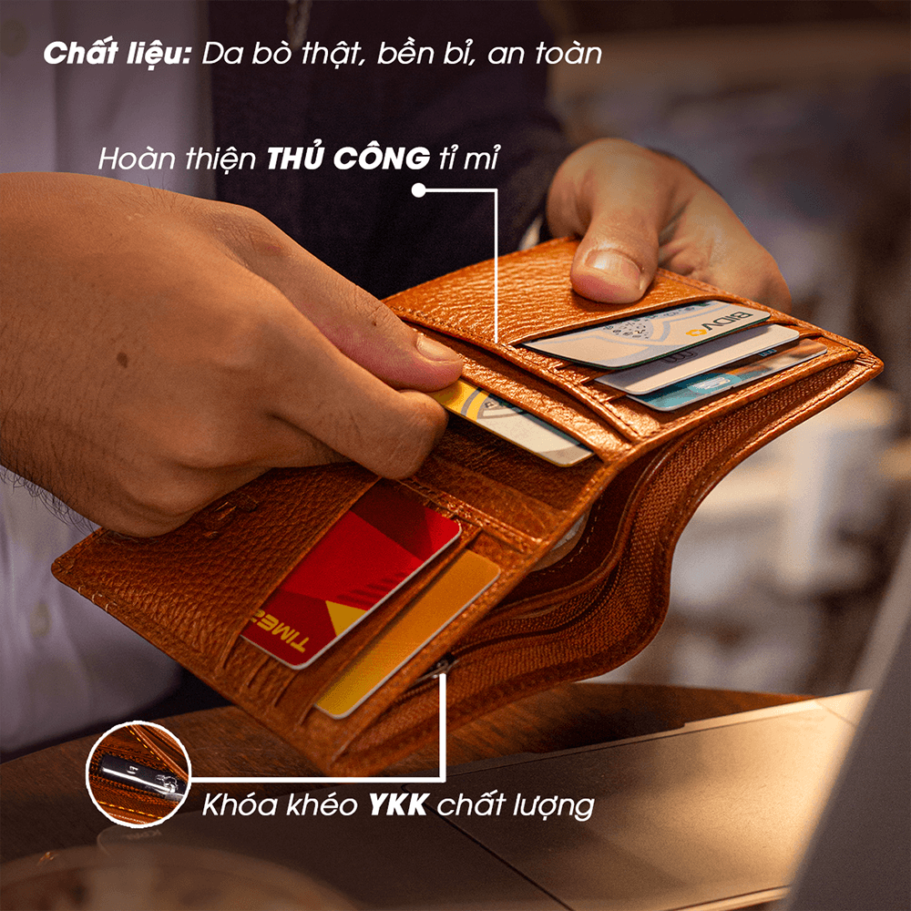Sang trọng và tiện nghi là hai yếu tố không thể thiếu trong bất kỳ phụ kiện thời trang nào dành cho nam giới. Ví da nam Kim Bảo T16 với thiết kế ví đứng đẳng cấp và chất liệu da bò thật cao cấp chính là sản phẩm kết hợp hoàn hảo hai yếu tố đó. Chọn điểm nhấn là đường chỉ nổi khác màu cùng vân da lớn góp phần tạo nên sự mạnh mẽ, đầy nam tính.