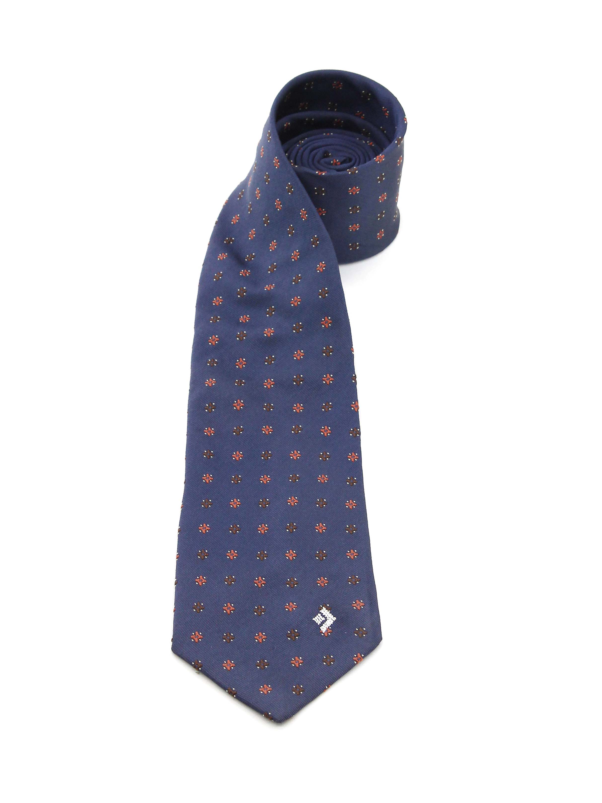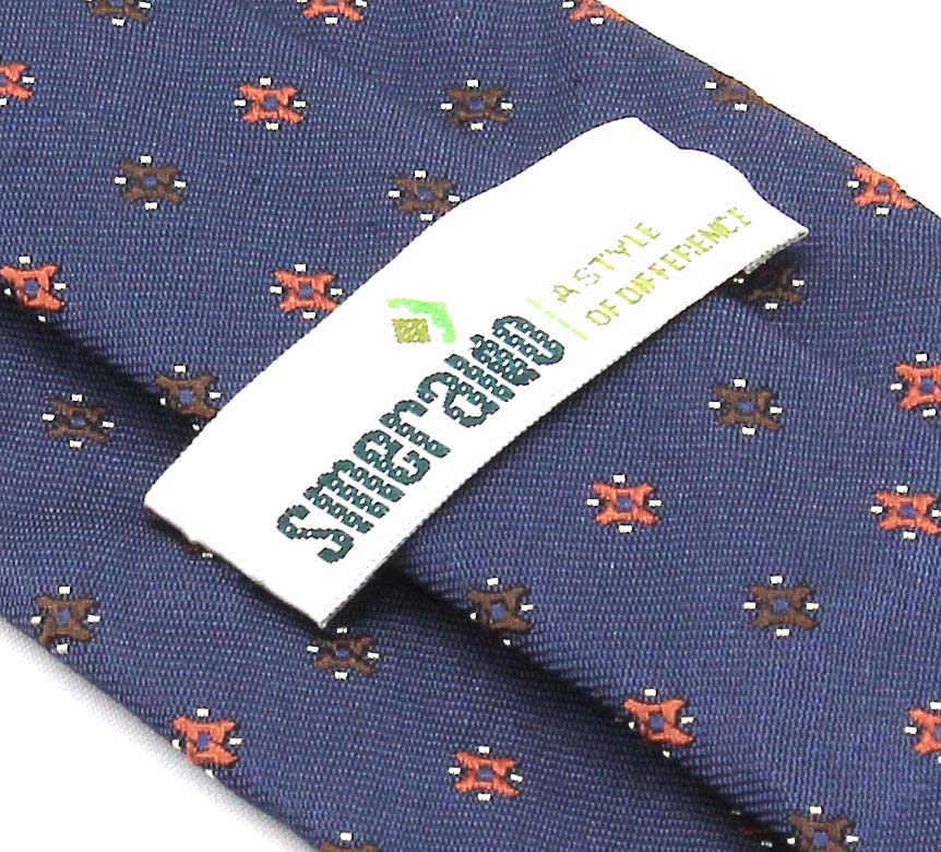 Màu sắc xanh đậm trang nhã kèm theo biến tấu chi tiết hình hoa văn màu cam và nâu cực kỳ tinh xảo, đẹp mắt, mang đến phong cách sang trọng, lịch lãm cho phái mạnh.