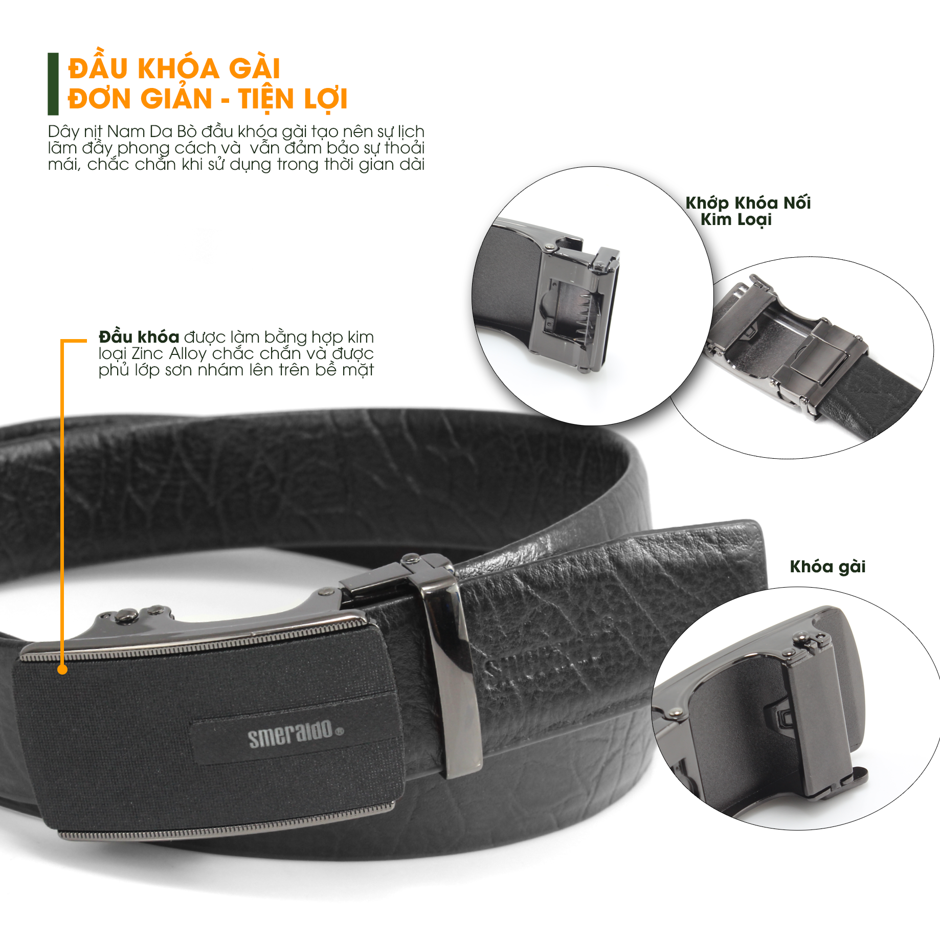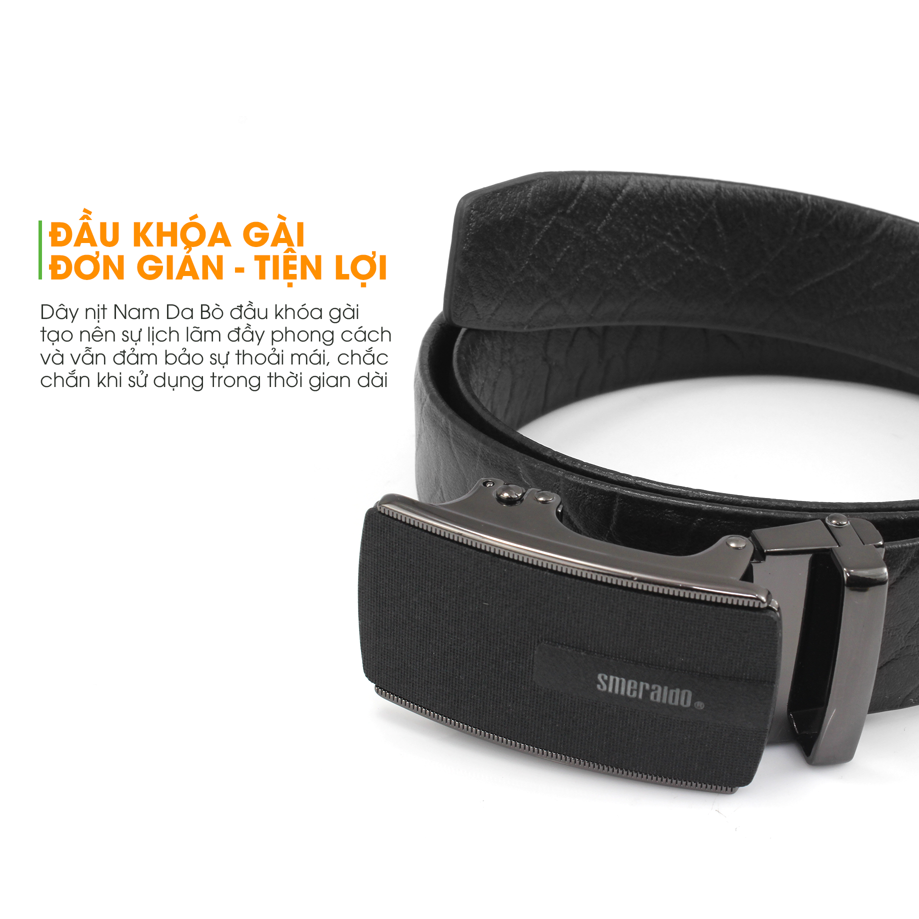 Thắt lưng Smeraldo SM06 với đầu khóa tăng chiều dài lên đến 4cm, thắt lưng không chỉ là phụ kiện trang trí, mà còn mang lại sự thoải mái và tính ứng dụng trong việc điều chỉnh kích thước phù hợp. Chất liệu da bò ý, cùng việc chế tác một cách tỉ mỉ, không chỉ làm tôn lên vẻ ngoại hình mà còn giữ cho sản phẩm luôn mới mẻ và bền bỉ theo thời gian.